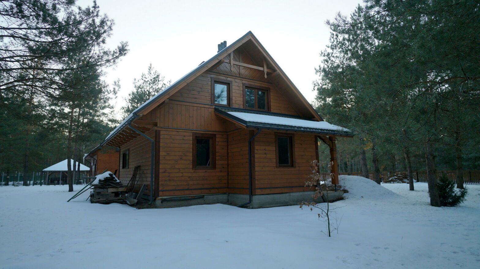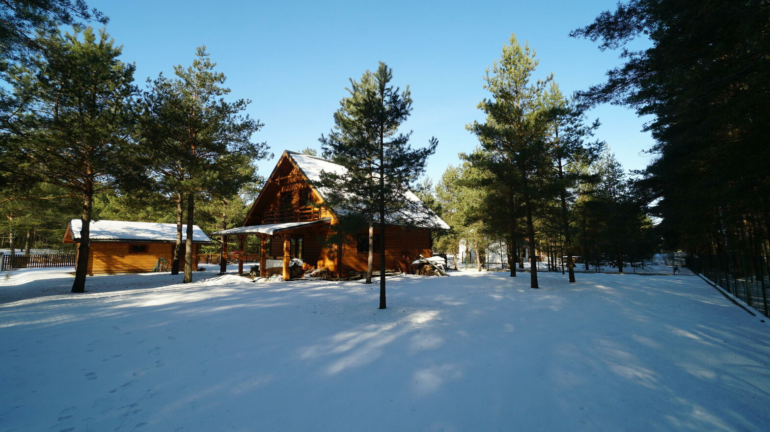 Dom posadowiony jest na zagospodarowanej działce o powierzchni 1505 m2 (nr geodezyjny 113/9). Łączna powierzchnia podłóg w domu to około 118 m2. Na posesji znajduje się również drewniany garaż o powierzchni około 33 m2.